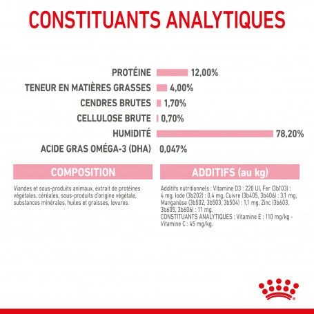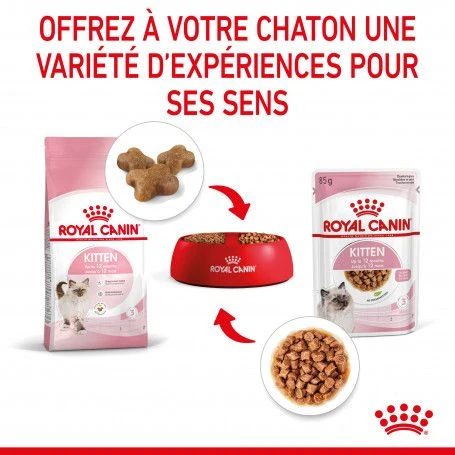 Les sachets repas Emincé en sauce Royal Canin Cat Kitten sont spécialement conçus pour les chatons jusqu’à l’âge de 12 mois.