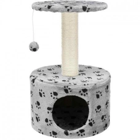 Ce petit arbre sans prétention dispose néammoins du nécessaire, un plateau d’observation, du sisal pour mes griffes, d’une balle pour jouer et d’un logis pour me reposer ! Pas si mal pour un mini !